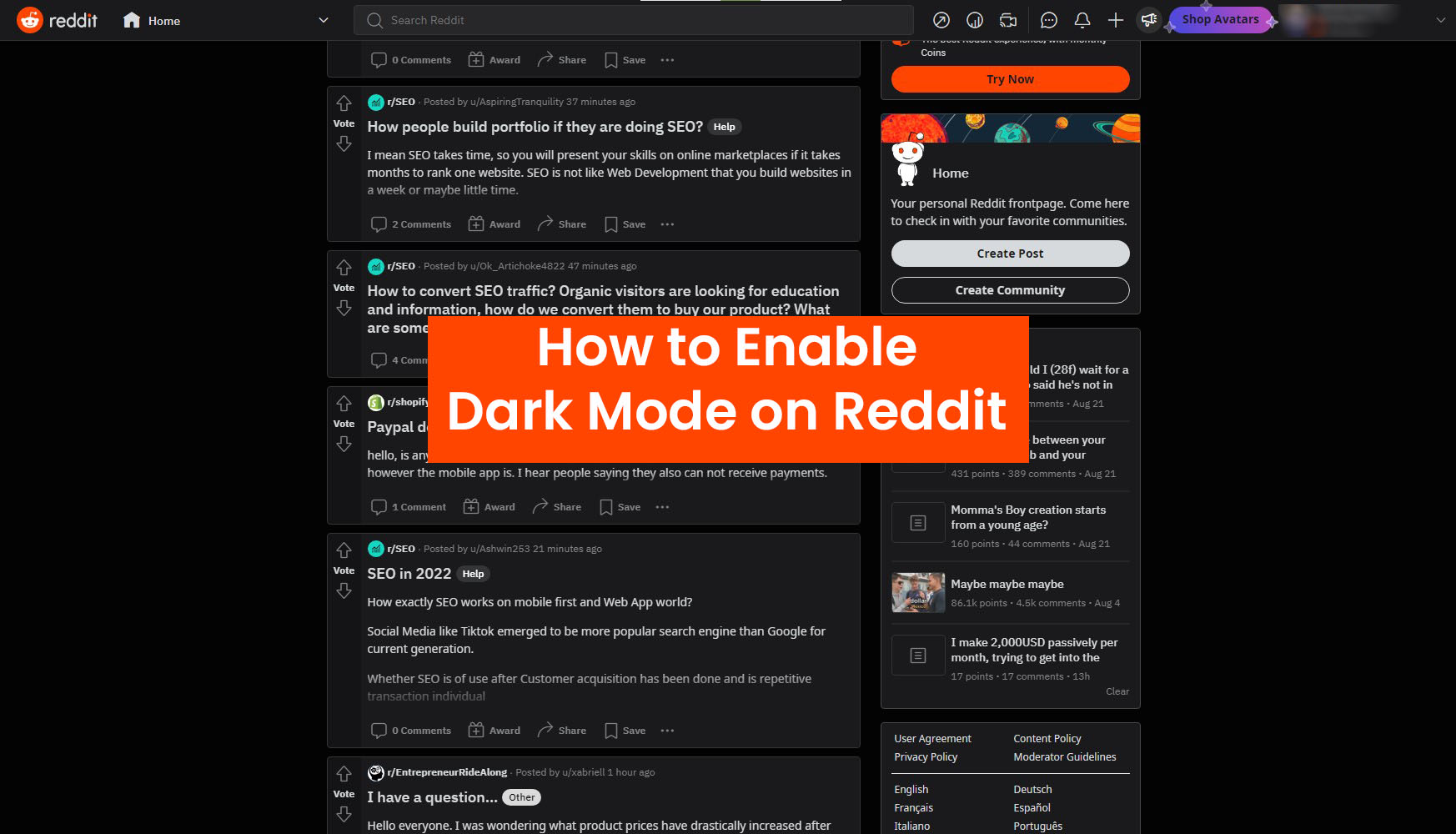 How to Enable Dark Mode on Reddit